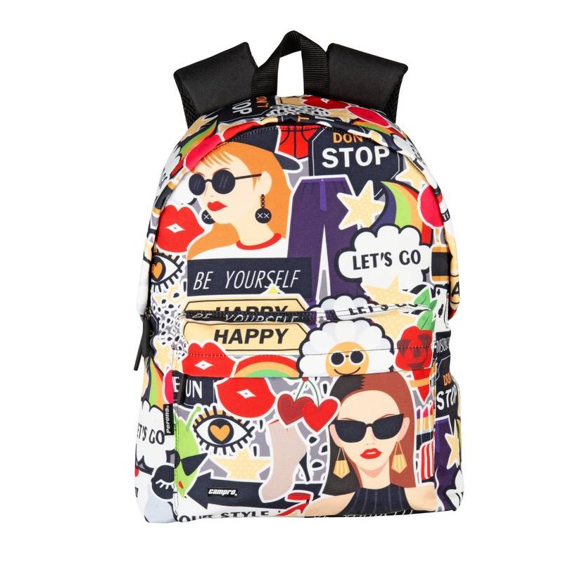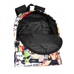 Incluye: 1 mochila junior con estilo cómic a todo color, espacio principal con cierre de cremallera, bolsillo frontal con cierre de cremallera, tirantes acolchados y ajustables, espaldera acolchada, sistema para adaptarla a carros portamochilas, asa de mano superior y tiras reflectantes.